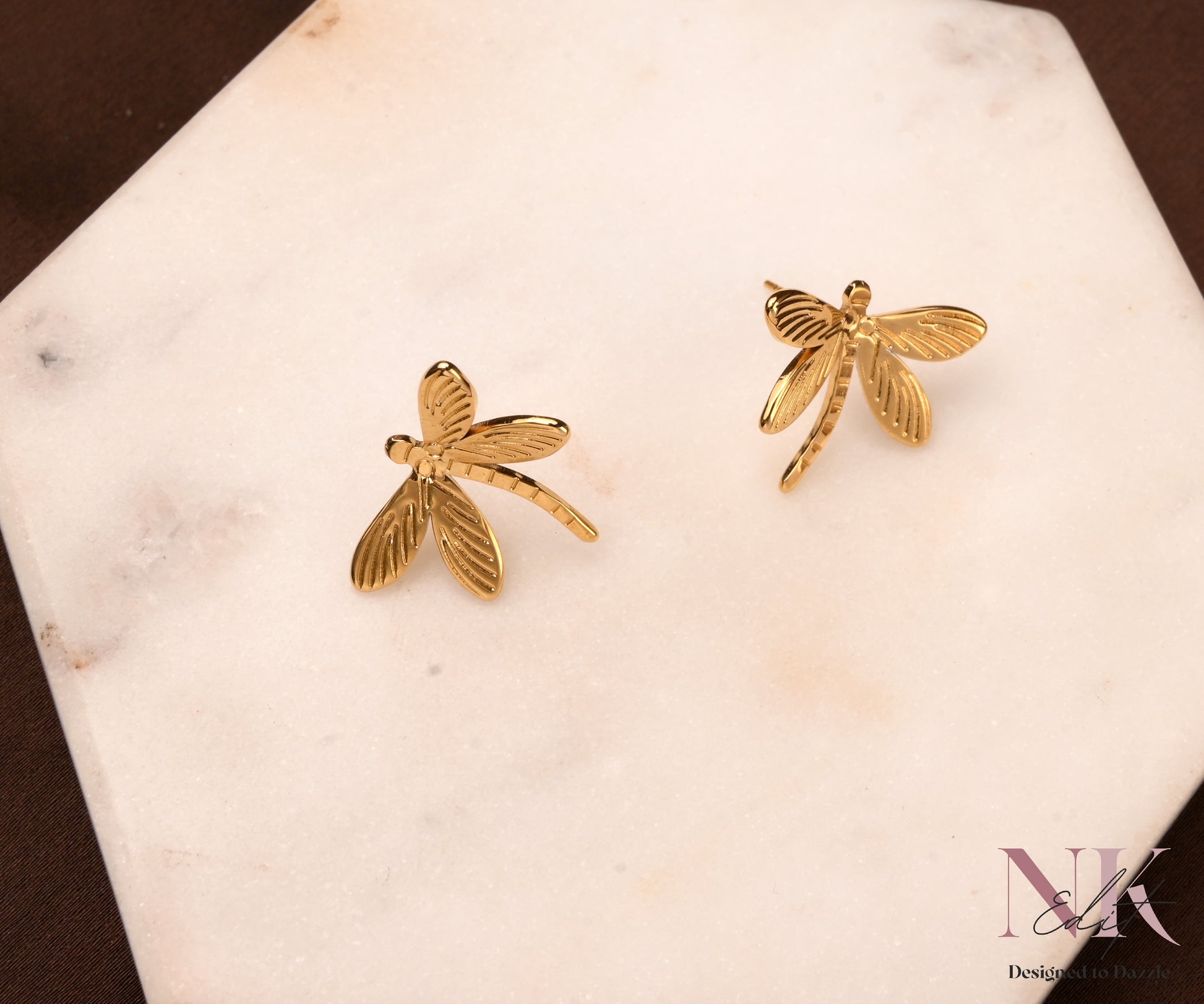 Elegant dragonfly-inspired studs with a glossy gold finish. Lightweight, anti-tarnish & perfect to add a chic nature vibe to your everyday look