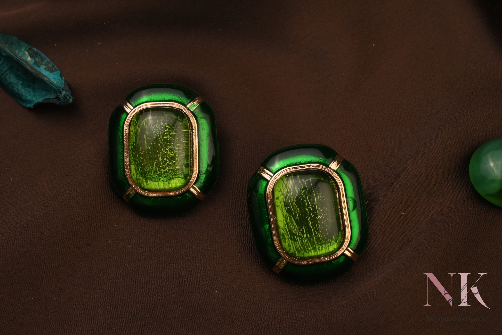 Bold green statement studs with a glossy finish for a luxe, modern vibe. Lightweight, anti-tarnish & perfect for elevating both ethnic and western looks effortlessly.