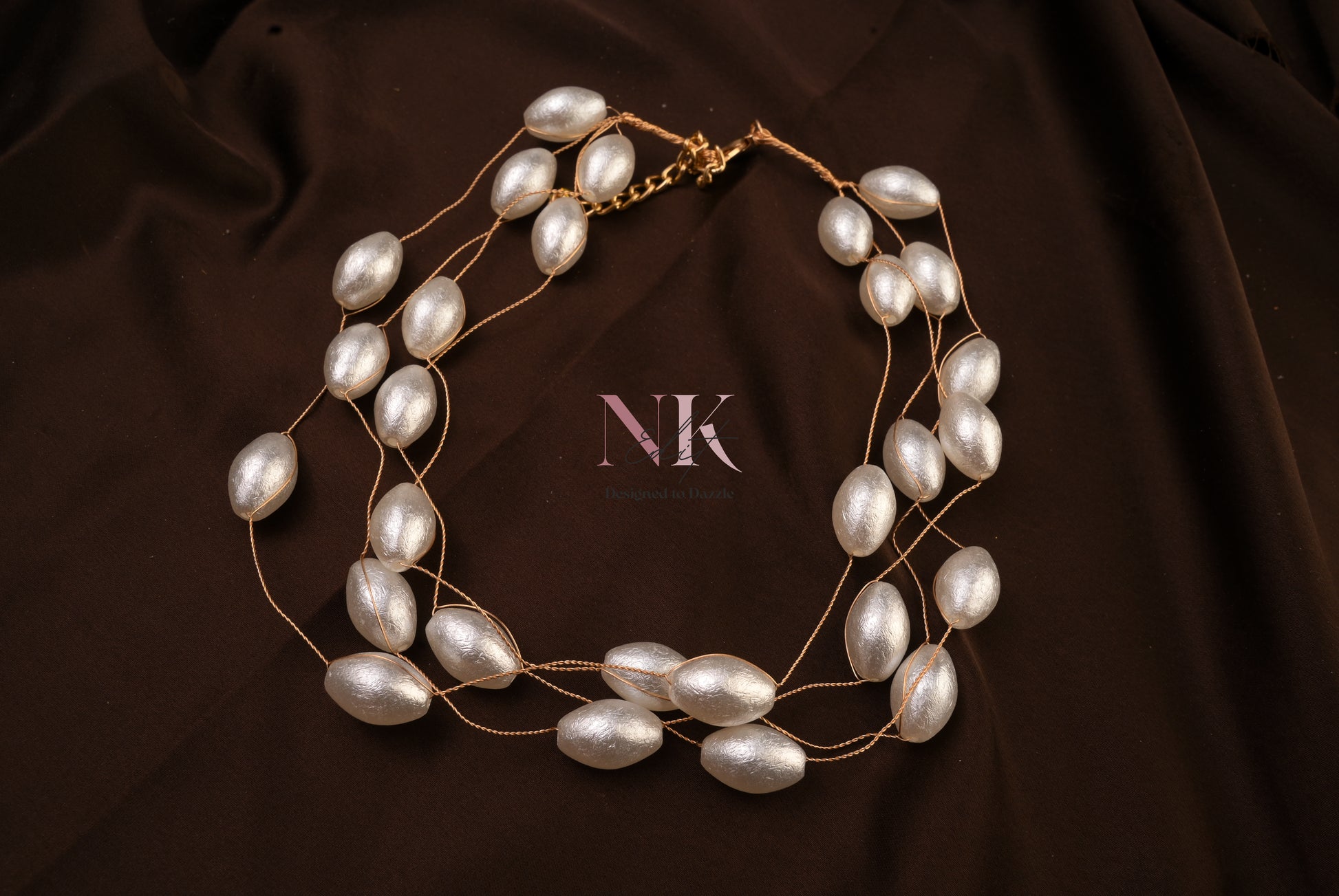 Exude sophistication with our Lustrous Elegance Multi-Layer Pearl Necklace, designed with beautifully polished oval pearls strung delicately on fine golden threads.